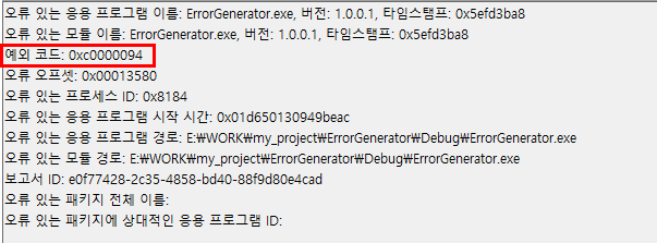 예외 코드 : 0xc0000094 본문