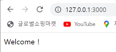 위 코드를 실행하면 'server is listening 3000' 메시지와 함께 서버가 실행되고 웹 브라우저에서 http://127.0.0.1:3000에 접속하면 다음과 같은 화면이 나온다.